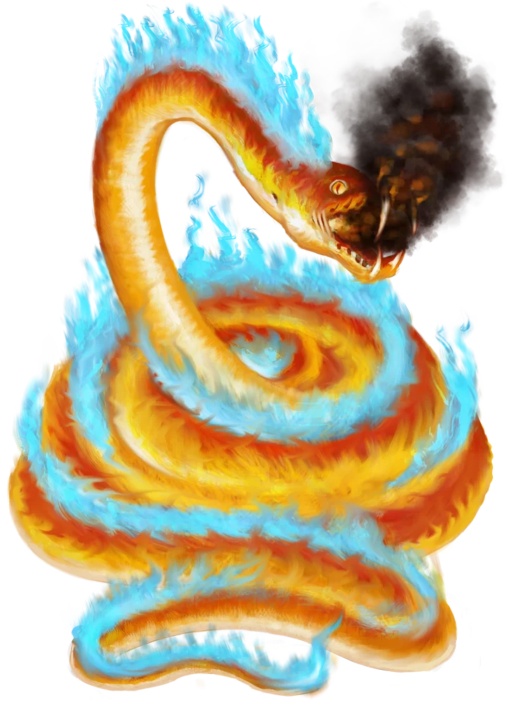 Firewyrms live in tubes of molten lava found throughout the Plane of Fire. These strange environments often connect to volcanoes on mortal worlds, giving firewyrms access to a wide variety of prey.