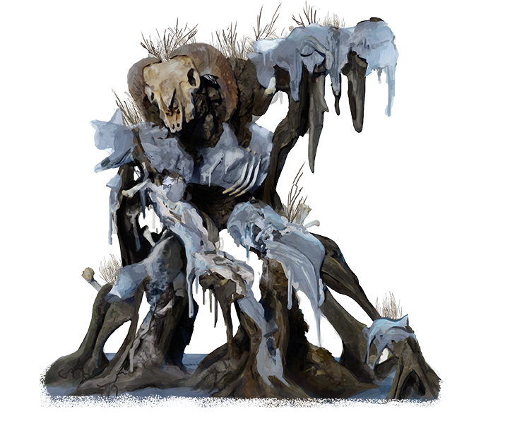 Like most oozes, rime sludges consist primarily of protoplasm, though theirs has a slushy consistency peppered with disgusting nuggets of indigestible matter, such as petrified wood, jagged arrowheads, and animal fossils. A rime sludge renews this protoplasm by consuming plants and animals and maintaining a careful balance of semifrozen decomposition in its mutable form.