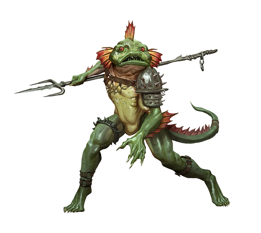 The most numerous of the alghollthus are the ulat-kinis, a servitor race created from human stock to serve as rank-and-file soldiers in alghollthu armies. At the zenith of alghollthu power, ulat-kinis formed massive legions and enjoyed significant power over other species. When the alghollthus retreated from the world, they abandoned teeming hordes of ulatkinis. Although these erstwhile soldiers tried to continue their conquering ways, their numbers declined rapidly in battlefield defeats and purposeful exterminations enacted by their enemies. Ulat-kini society degenerated, so that now only a few enclaves exist in the depths of the earth or along isolated coastlines. Few remember their own species’ name, instead using the epithet their foes gave them: “skum.”