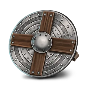 Similar in size to a buckler, this steel shield is intended to absorb as many blows as possible instead of deflecting attacks. It features multiple layers of metal and is reinforced with additional wood.