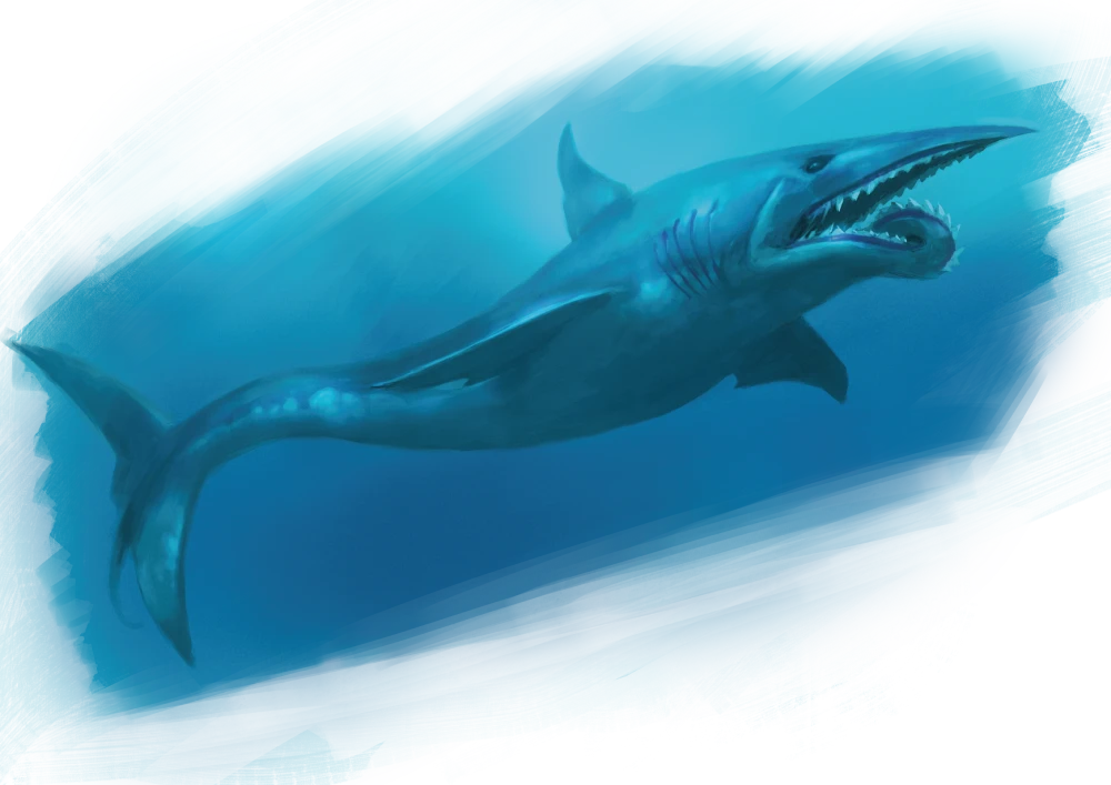Though not a true shark, the helicoprion belongs to a similar lineage of cartilaginous fishes. The predator's most striking feature is its tooth whorls, which spiral outward in its lower jaw.