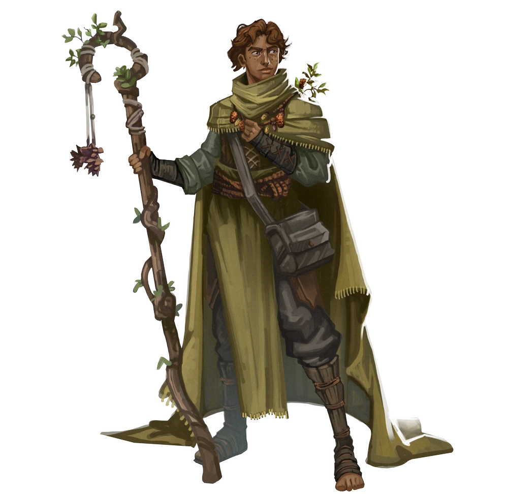 A neophyte druid learns basic techniques and spellcasting soon after being initiated into their druidic order. The druid initiate has already learned much from their mentors—elders among the order—but hasn't had a chance to develop their own identity.