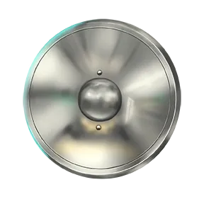 The face of this standard-grade silver salvo shield (Hardness 7, HP 28, BT 14) is polished to a mirror finish.