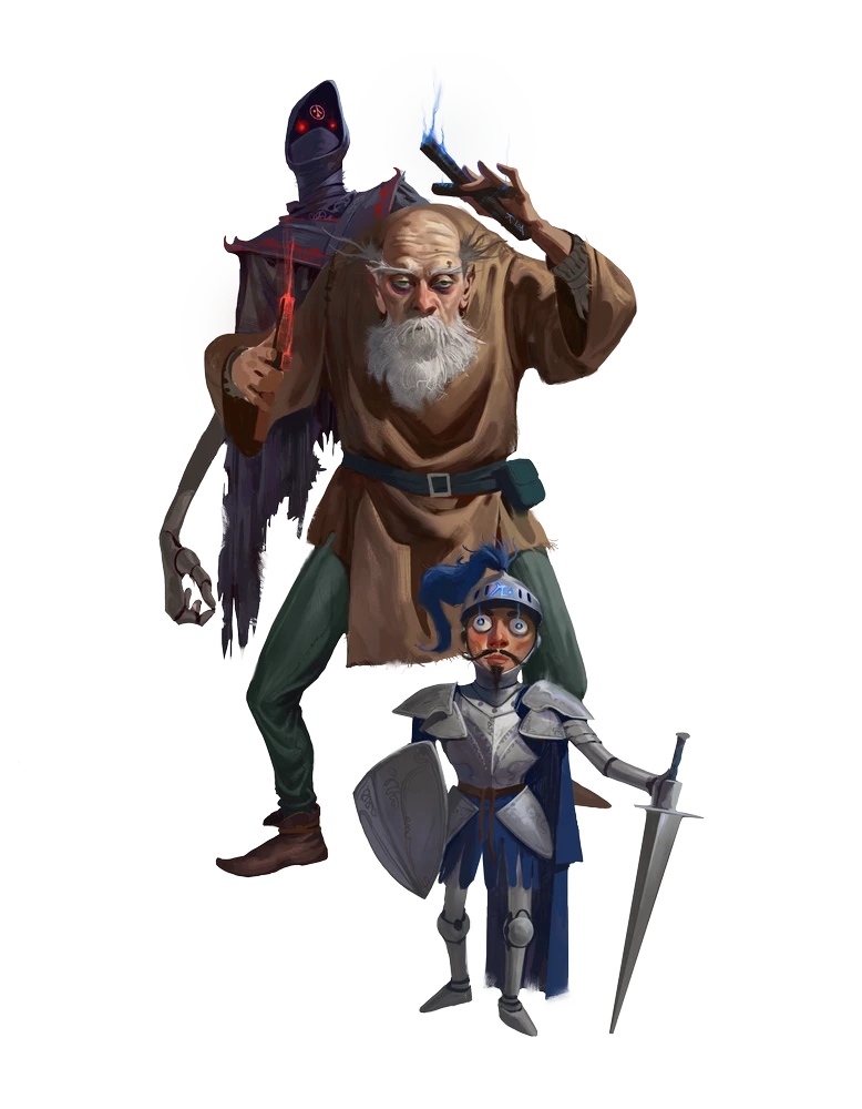 On the surface, puppeteers are simply providers of entertainment to the masses. With their little puppets and simple stories, their pantomimes are fun for the whole family. However, some puppeteers have a secret. They can animate their puppets with magic, sending them out to cause all manner of mischief in the dead of night. Puppeteers of this ilk tend to travel by themselves, though they might be found as part of a traveling group if they become lonely. They may serve as an innocent front for more illicit dealings or as lackeys to a larger group of thieves and ne'er do wells.