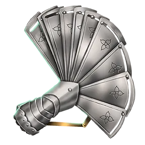 This buckler-sized shield is segmented, allowing it to collapse into a housing bound to a gauntlet for easy storage. A small catch enables you to expand the shield quickly in battle when you're in need of defense.