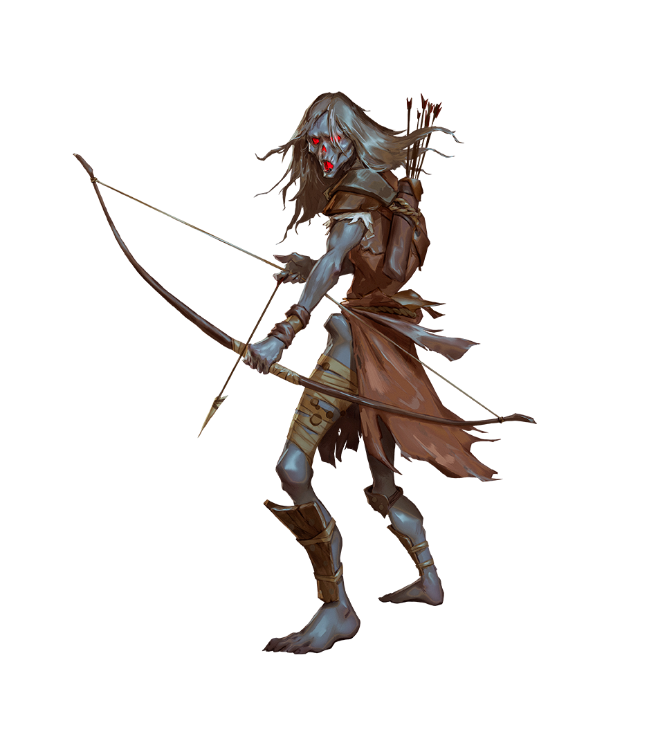 Dangers deep in the wilderness claim the life some lone scout or hunter. When they arise as wights, they renew their hunt with equal vigor, but all the living are now their prey. Hunter wights prefer to seek strategic ground, frequently taking residence atop hills or within abandoned watchtowers and keeps.