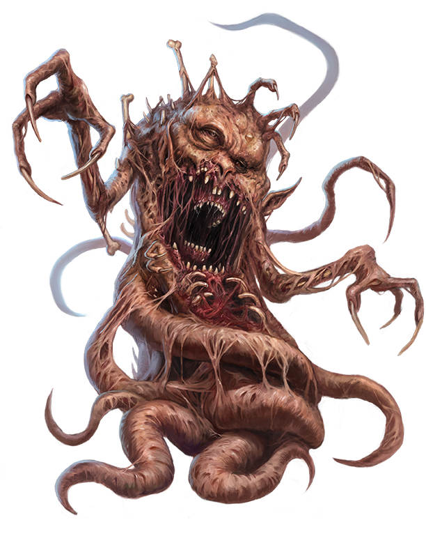 Grothluts may be the weakest example of a fleshwarp, and driders the most successful, but others exist as well. Ghonhatines are lumbering fleshwarps formed from xulgaths, while the tentacled irnakurses are formed from surface-dwelling elves. Sinspawn are fleshwarps as well, of course, although their methods of creation differ drastically from the techniques mastered by drow.