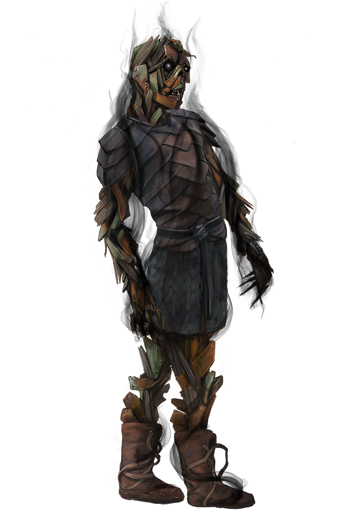 Shadowforged guardians are created through the intricate and dangerous process of siphoning penumbral energies and matter from the Shadow Plane and then binding them to a physical skeleton of wood and metal.