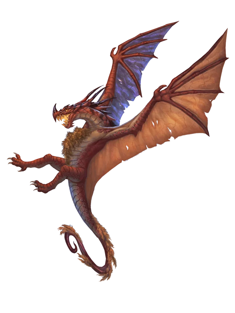 Flame drakes dwell near volcanoes and magma, but it's not unheard of for one to drift into nearby areas like forests or wooded hills. Their scales are usually some shade of red, occasionally fading to smoky blacks and grays along the edges of their wings and the tips of their tails.