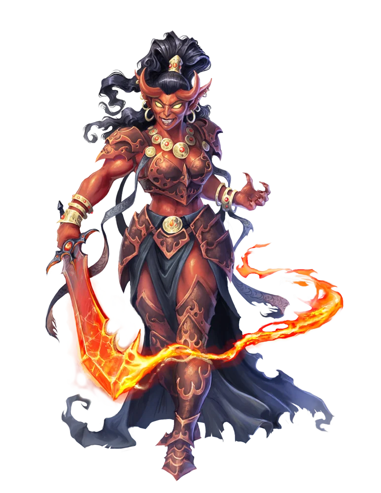 The fierce and unforgiving ifrits hail from the Plane of Fire, where they build metropolises and trade centers that draw extraplanar travelers. Many ifrits are tyrannical or warmongering, and most use their might to accomplish their goals.