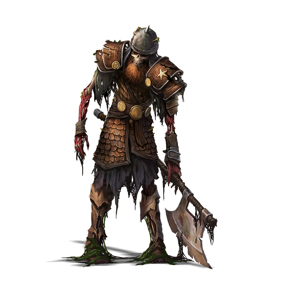 Risen corpses of sailors who died at sea, draugr reek of the rot and decay of the briny deep. Their eyes glow with ghastly green light, and rotting seaweed, barnacles, and dead sea creatures cling to their bodies. Draugr can't speak, but expresses their malicious emotions with gurgles, as though they were eternally drowning with lungs full of water. They desire little more than to attack living creatures, especially those who sail the sea. Even when they go upon land, draugrs often drag the corpses of those they strike down back to the water, populating the depths with even more dead.