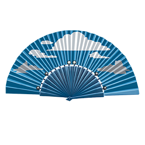 This fan of soothing winds has six cloud-shaped glass beads on the bottom of the fan, one on each of the exposed ribs. One side of the beads is white, and the other is a dark, stormy gray. Once flipped, a bead stays on its newly exposed side for an entire day before resetting overnight.