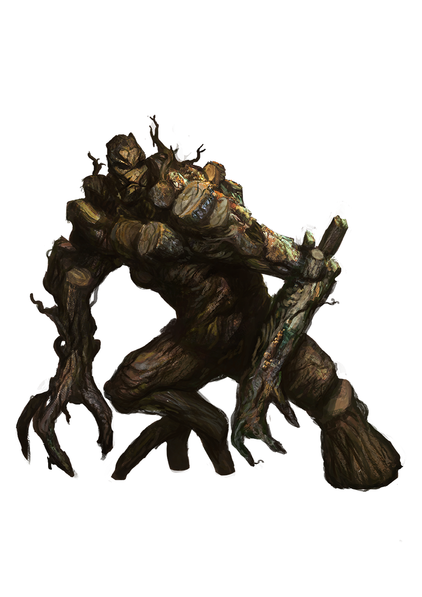 Wood golems are often given vaguely humanoid shapes, almost as if cobbled together from scraps of firewood and discarded burls. It's less common for wood golems to have artistic embellishments such as engraved patterns, or to be carved in the shapes of different types of creatures to meet the tastes of their owners. While wealthy patrons have been known to commission wood golems to be painstakingly carved to resemble themselves or their ancestors, to serve dual purposes of protection and ego bolstering, most wood golem crafters don't bother. Druids and creatures who protect woodlands, such as arboreals, typically see wood golems as an affront or an abomination, akin to the horror humanoids often feel when facing a carrion or flesh golem. As a result, it is rare to see such creatures serving as guardians for fey or druidic holy sites, despite the thematic match between the wood golem's appearance and such locations.