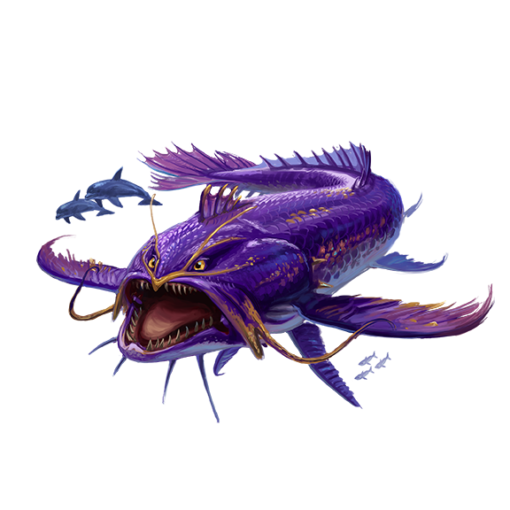 Hungry and resentful, the malevolent kun is a mythological fish monster that dwells in the remotest, coldest depths of the ocean. This massively powerful creatures could easily rule a subaquatic domain if they cared to, but kuns are also famous for their total self-absorption and complete ambivalence toward other forms of life. A kun remains as far away from other creatures as they can, subsisting on only their own icy hatred. They can consume and digest prey, but such feedings are incidental. Most kuns remain ignorant and uncaring, keeping themselves in the dark, disregarding any signs of life around them except to occasionally lash out with a spiteful attack.