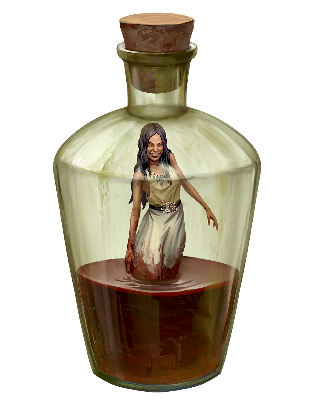 Polongs exist to serve their creators as loyal familiars, spies, and assassins. Their convenience makes them popular among the wicked, as each resides within a glass bottle which normally seems to contain only a small amount of red liquid. When addressed by their owner, a polong appears within their bottle as a tiny, beautiful humanoid drenched in blood. Forcing one to manifest outside the bottle reveals their true shape: a blood-soaked spirit with a hateful visage and sickle-shaped claws.