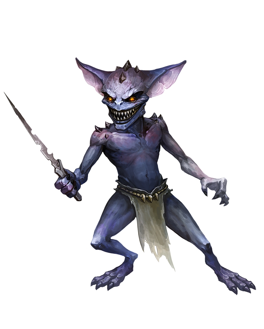 Gremlins are cruel fey tricksters and saboteurs who have fully acclimated to life on the Material Plane, finding distinct niches for their inventive destructiveness. All gremlins delight in ruining or breaking things, whether it’s something physical like a device or vehicle or something intangible such as an alliance or relationship. A gremlin’s greatest joy is watching the collapse of complex creations, preferably after the lightest and slightest, carefully targeted push from the gremlin. Gremlins tend to denigrate, bully, or even slaughter their lesser kin, particularly mitflits, whom gremlins (and many others) derisively call “mites.”