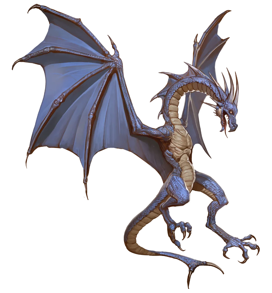 A wyvern is a venomous drake with a well-earned reputation for impatience and aggression. As much as 15 feet long and weighing up to 1,000 pounds, a wyvern's resilient body allows them to crash talons-first into large prey without serious risk to themself. A wyvern uses their momentum to stun their target before injecting it with searing venom or carrying it over the side of a nearby cliff. Because a wyvern lacks the strength to haul their prey all the way to their nest intact, they're far more likely to lift and drop their victim over a gully or canyon and let gravity do its work before they descend to pick apart the carcass.