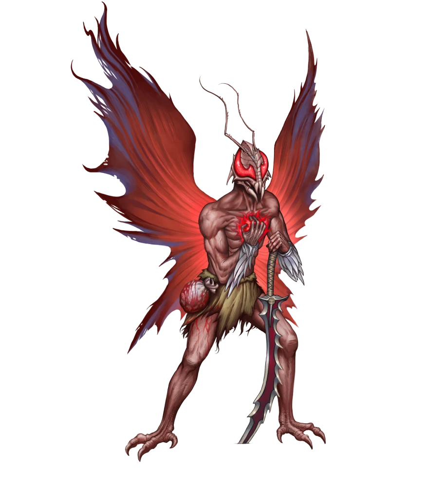 This mothman priest of Pazuzu does not share his actual name with anyone, in part because the name itself cannot be spoken aloud—only conveyed via an unsettling telepathic sending. To those he manipulates and torments, he is known only as the Red Bishop.