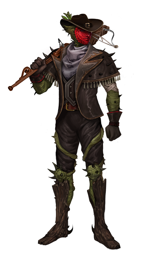 Rare Ghoran Humanoid Plant Source Impossible Lands pg. 35These intelligent plant people, created by a long-dead druid, possess a sort of immortality through their seedsāunless these are destroyed by external events other than merely the ravages of time.During the height of the wars between Geb and Nex long ago, the archmage Nex asked the renegade druid Ghorus to create a plant that would feed his people even in the most inhospitable land. Ghorus did so, developing a flower that would adapt to every environment and withstand every sort of magecraft and spellworking. He succeeded too well. In the strange soil of the Impossible Lands, the flower grew and soon began to thinkāand then to walk and speak. These were the first ghorans. Despite their new awareness, ghorans found that many other peoples were adept at ignoring inconvenient truths, especially those involving where their next meal might come from. Bit by bit, seed by seed, ghorans grew themselves into humanoid forms, hoping to engender sympathy by mirroring the appearance of humanoids. It eventually worked, and the ghorans won citizenship and protected status in the nation of Nex. Even so, time and predation has taken its toll; the population of ghorans is small and ever dwindling.