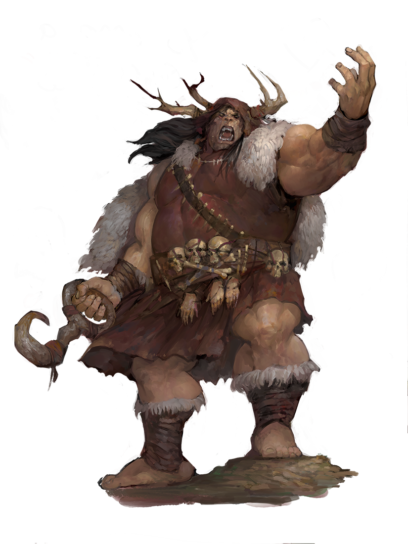 In ogre society, might makes more than right—it makes the rules. The strongest or most violent ogre in a family (in most cases, this is the same ogre) is invariably that family’s boss. Quick to hook fallen foes on their weapons, even other ogres fear the repercussions of displeasing an ogre boss. When an ogre boss barks out commands, the other members of the family move quickly to obey.