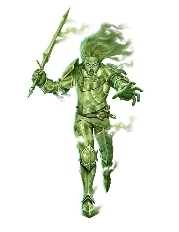 Cavaliers and knights who died for their cause make for particularly strong-willed phantoms. Though their motives vary, these phantoms often seek to continue their lifelong missions even in their purgatorial states, and their strong forces of will make them formidable fighters in spite of their incorporeality. A phantom knight might strive to find living followers of their church or order, or seek out other mortals they knew in life as a way of staying grounded and avoiding the corruption of undeath.