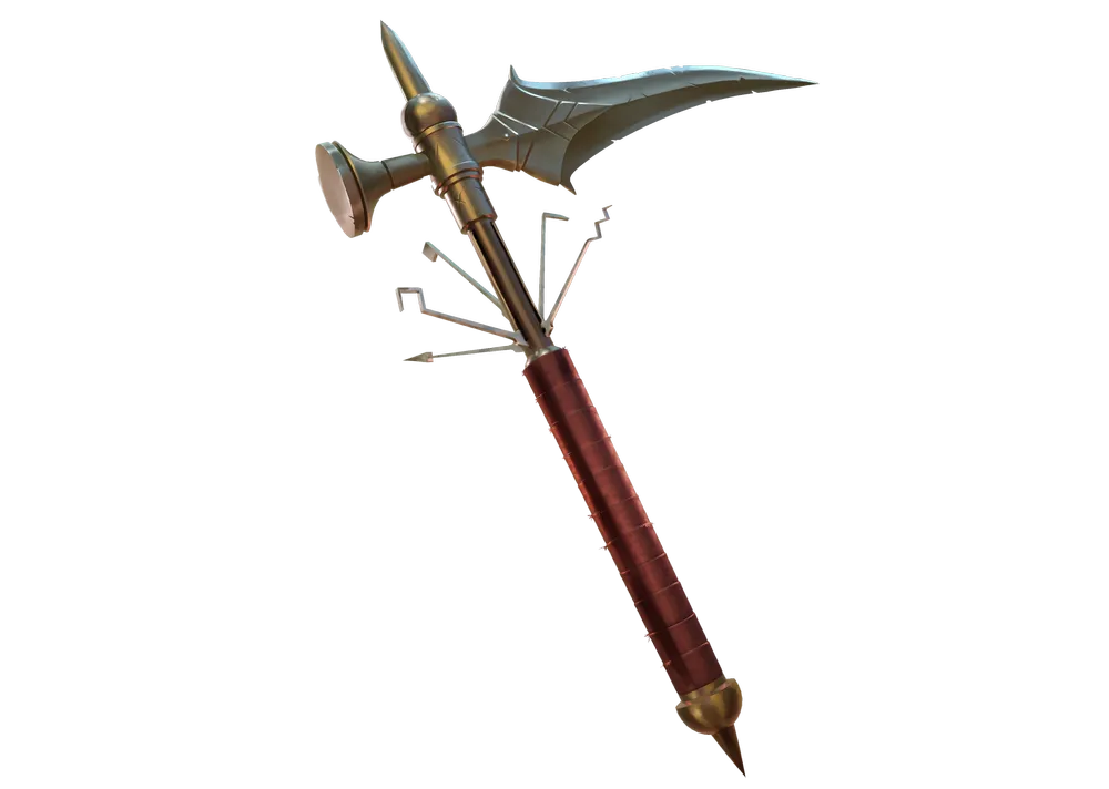 This ingenious kobold pick conceals several hidden traps that the wielder can activate to trick and befuddle foes with a variety of damaging blades and bludgeoning surfaces.
