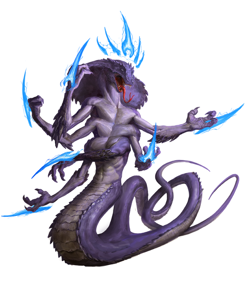Proteans divide themselves into a loose caste system and possess a dizzying variety of powers. Most proteans have a serpentine body with the head of a primeval beast. Scholars have long been intrigued by this fact—that scions of dissolution and disorder would share so many features—pointing out that even in the purest chaos there is some semblance of order. Others note that the serpentine form is one of the most primeval shapes, perhaps suggesting that in a reality at the dawn of time, such shapes were all that could exist. The proteans themselves have little to say on the matter, which, perhaps ironically, only adds to the confusion and lack of consensus surrounding their kind. After all, if even chaos cannot be trusted to be chaotic, would that not be the purest form of entropy?