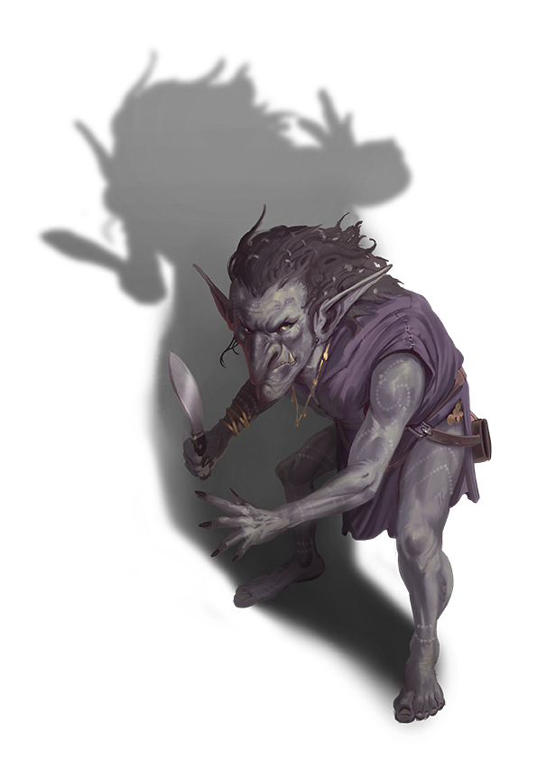 In hushed tones, superstitious people tell their children stories of wayangs— living shadows who come out at night to eat misbehaving children. Mostly, these stories are just fictions of fearful minds, but it's true that wayangs were originally creatures of shadow, straddling the edge between light and darkness. The ancestors of modern day wayangs set out on a great exodus some 10,000 years ago, leaving their native Shadow Plane to seek out a new home. On Golarion, they found a great cataclysm had blocked out the sun behind a cloud of smoke and ash, enshrouding the planet in a seemingly endless night, and here they made their new home. When the light returned, wayangs retreated into what shadowy places they could find, avoiding contact with humans and other peoples of the light, who viewed the small, gaunt beings as suspicious reminders of difficult times.