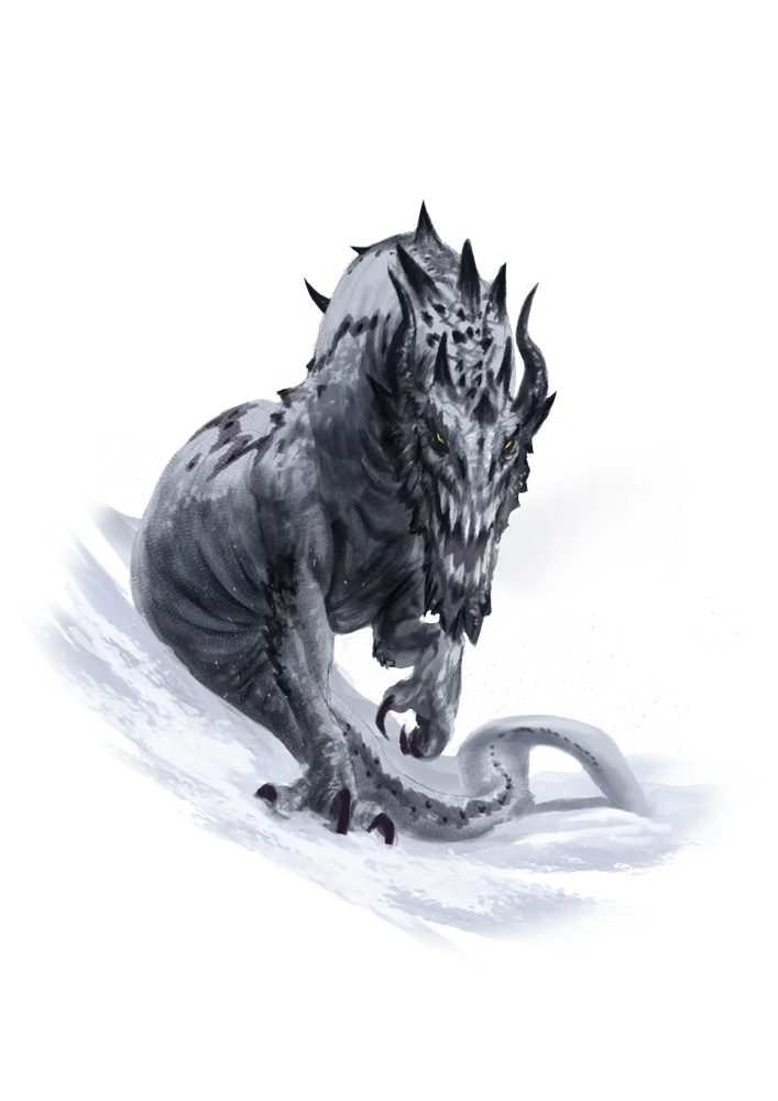 The ice linnorm dwells amid glacial crevasses, atop wind-blasted mountain peaks, or within glittering caverns carved from the hearts of the mightiest of icebergs.