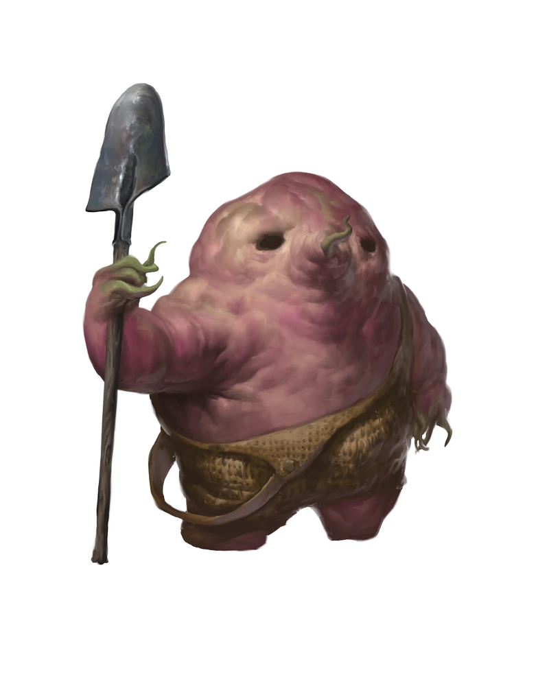 Hardy root leshies have the strength and stamina to dig furrows for planting seeds over long hours. Though they're humble even among leshies, they can be extremely stubborn even against powerful adversaries.