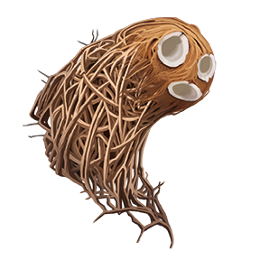 Wood wisps resemble coconuts trailed by thick nests of branches that cover and conceal even deeper webs of thorny vines. They are, unfortunately, both unaware of the pain these thorns can cause fleshy creatures and very physically affectionate in their eagerness to offer assistance.