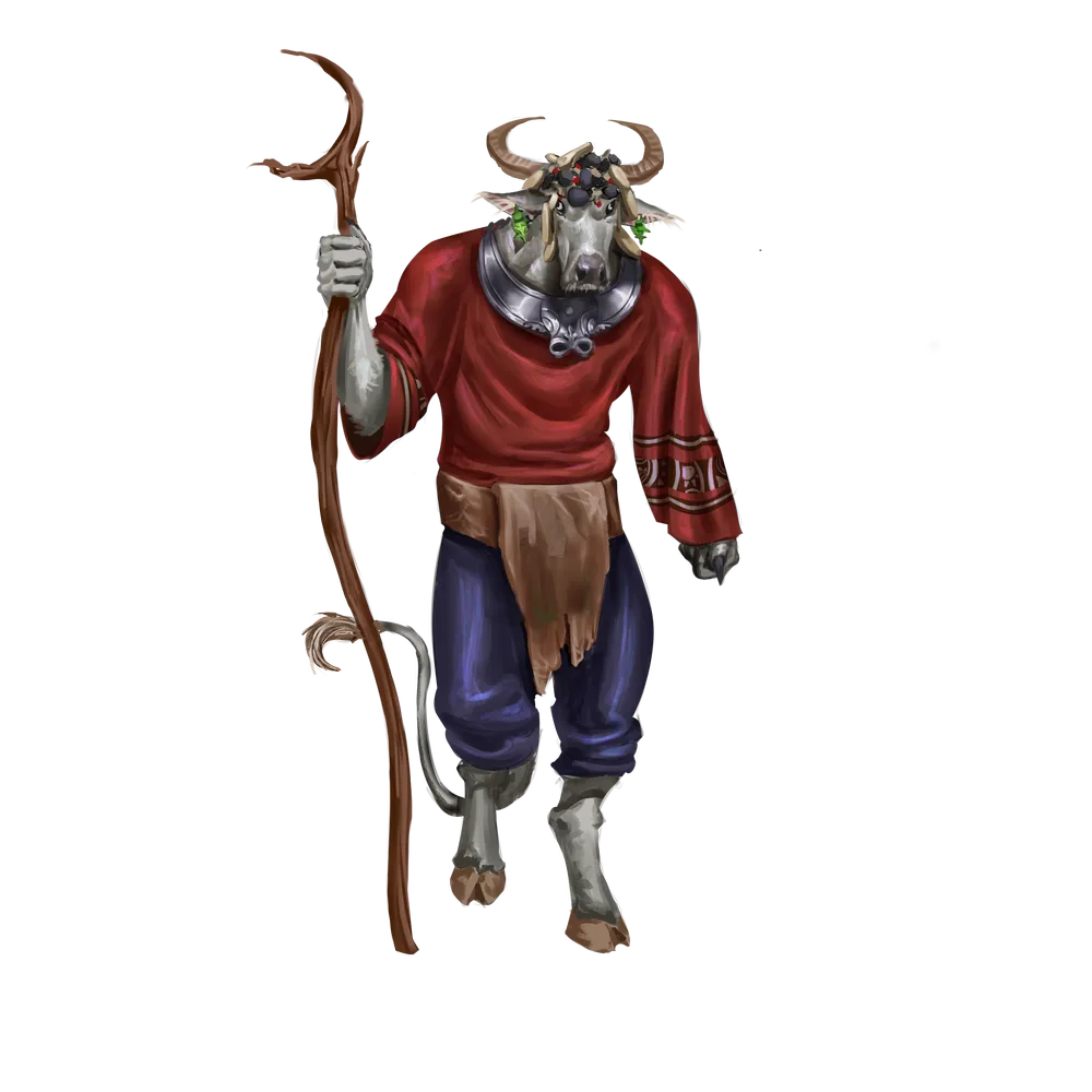 Rare Humanoid Sarangay Source Tian Xia Character Guide pg. 59Powerful carabao-headed warriors who live on the isles of Minata. Known for the magical gems in their foreheads that are said to contain their souls.Sarangay are carabao-headed people who have long survived deep in the forests across Tian Xia. Many adventurers have thought them to be monsters at first, but sarangay are nothing more than a thriving society who value their community and their souls above all else. Their cultures are built upon the intense desire to protect their communities and their chosen leader. Their horns are said to be a crescent moon, and their towering statures are said to have come from their ancestors being stretched so far up to reach their Father Moon while their Mother Earth kept them close to her bosom. They revere the great Father Moon, their First Ancestor, and endeavor to protect and exalt nature above all else, for they understand that they're part of it.