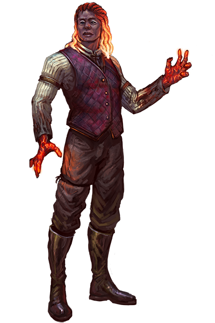 Ifrits descend from creatures such as efreet, salamanders, and magma dragons. Their spark of ancestral flame gives them a reputation for being passionate, if not capricious.