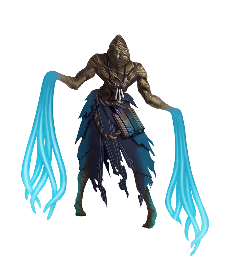 Spellscar fexts are spellcasters who were destroyed by wild magic or wellspring surges they tried—and failed—to control. The magical feedback that snuffed out their life warped and animated their flesh, twisting them into shambling undead. Spellscar fexts stand 6 feet tall with disproportionately long arms that end in clusters of waving magical tendrils.