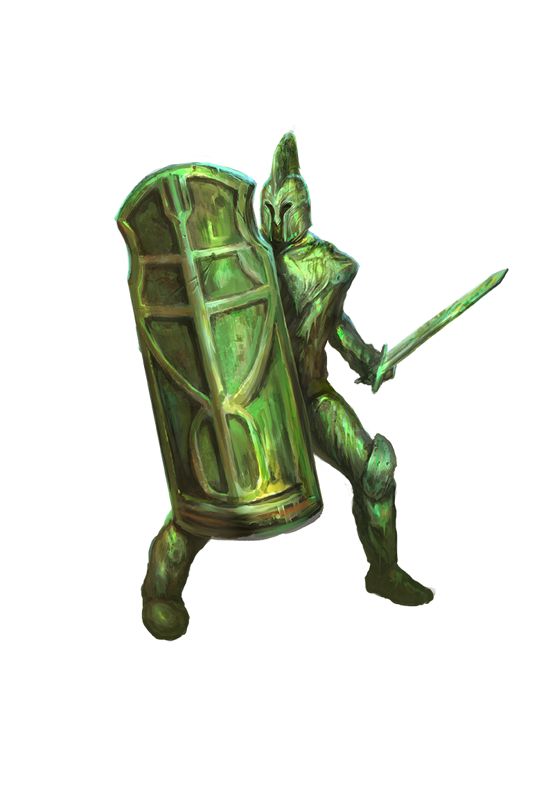 Doorwardens are constructs originally invented by elves. Upon first glance, these guardians resemble ornate doors made entirely of steel or even mithral, but when trespassers try to force their way past, the doorwarden transforms into a skilled and sturdy soldier bearing its “door” like a towering shield.