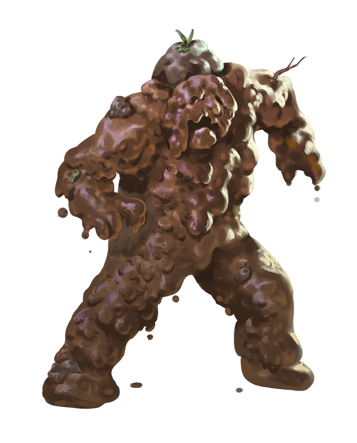 In its resting form, a mudwretch looks like a large puddle of thick, dark mud, heaped at the center in a slightly drier patch of loam. When a living creature approaches, though, the mudwretch lurches upward, piling its muddy flesh upon itself to form a roughly humanoid shape, often in vague mockery of the approaching creature's general form in cases where the creature is a humanoid itself.