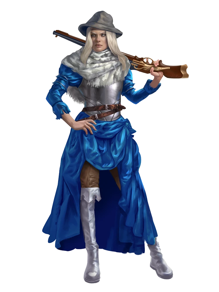 Melee [one-action] dagger +15 [+11/+7] (agile, finesse, versatile S +15), Damage 1d4+8 piercingMelee [one-action] fist +15 [+11/+7] (agile, finesse, nonlethal, unarmed +15), Damage 1d4+8 bludgeoningRanged [one-action] arquebus +15 [+10/+5] (range 150 feet, concussive, fatal d12, kickback, reload 1), Damage 1d8+6 piercingRanged [one-action] dagger +15 [+11/+7] (agile, thrown 10 feet, versatile S +15), Damage 1d4+8 piercingConcussive Shot [two-actions] The sniper makes an arquebus Strike against a creature within the weapon's first range increment. On a success, the creature must succeed at a DC 21 Fortitude save or be stunned 1 (stunned 2 on a critical failure).Full Bore [two-actions] The sniper makes an arquebus Strike against two creatures that are adjacent to each other. The attack ignores any lesser cover one target provides the other. Roll damage once, and apply it to each creature the sniper hits. This counts as two attacks when determining the sniper's multiple attack penalty.Sniper's Edge The sniper's ranged Strikes deal 2d6 extra precision damage to off-guard creatures.Surprise Attack All enemy creatures that have not yet acted in combat are off-guard to the sniper.