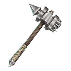 This massive hammer's metal head is shaped or molded with heavy metal wedges along its primary striking surface, enabling it to tear through shields and armor with ease.
