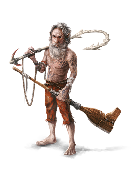 Melee [one-action] fish hook +10 [+5/+0] (trip), Damage 2d10+7 piercing plus hookedMelee [one-action] oar +10 [+5/+0] (shove), Damage 2d6+7 bludgeoningRanged [one-action] fish hook +11 [+6/+1] (thrown 30 feet), Damage 2d10+7 piercing plus hookedHooked A creature struck by the culdewen's fish hook is skewered, taking 1d4 persistent bleed damage as long as the hook remains stuck in it. The fish hook can be removed if a creature Escapes (DC 18), pulling it free. Land the Fish [one-action] Requirements A creature is hooked by the culdewen's fish hook and adjacent to the culdewen; Effect The culdewen hoists the creature over their shoulder, as though it weighs no more than a fish. Unless the creature is unable to act, the culdewen must attempt an Athletics check against the creature's Fortitude DC. On a success, the creature is restrained by the culdewen. Escaping from the restrained condition (DC 18) also allows a creature to remove the hook. While hoisting a creature, the culdewen gains a +20-foot status bonus to their Speeds and is compelled to escape with it (see culdewen's curse above).Reel In [one-action] (manipulate) The culdewen pulls the rope attached to their hook. If they have no creature hooked, the fish hook returns to the culdewen's hand. If a creature is hooked, the culdewen attempts an Athletics check against the creature's Fortitude DC, pulling it up to 30 feet closer on a success (60 feet on a critical success).Swear [one-action] (auditory, curse, enchantment, primal) The culdewen unleashes a string of invectives. Each creature that hears them must attempt a DC 18 Will save, with the effects of mariner's curse and is then temporarily immune for 24 hours. Even on a failed save, the curse ends automatically after 1 day.