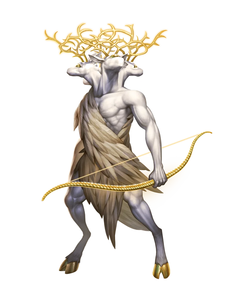 Qarnas are secretive and tireless sentinels and scouts, patrolling the Outer Sphere's untamed wilds for evil to eliminate and keeping small communities safe from demons, devils, and worse. They resemble ornate statuesque creations with four stag-like heads and golden horns. When requested to do so by their allies, especially the god Erastil, they journey into the Universe and patrol dangerous frontier areas, secretly performing acts of kindness such as leading hunters to food, helping lost children, and driving off evil creatures.