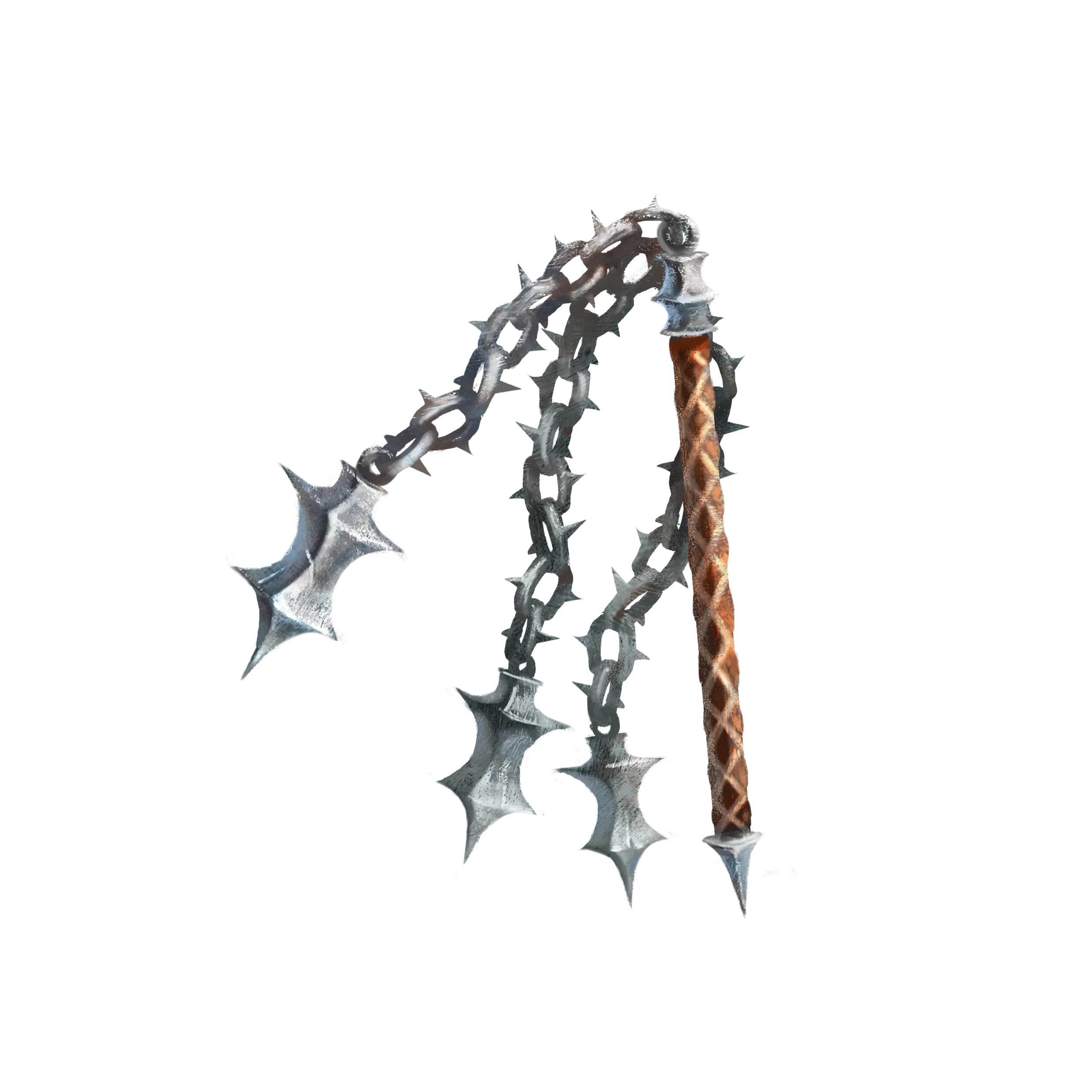 This large flail has a long shaft connected to a shorter piece of stout wood or metal that's sometimes inlaid with spikes.
