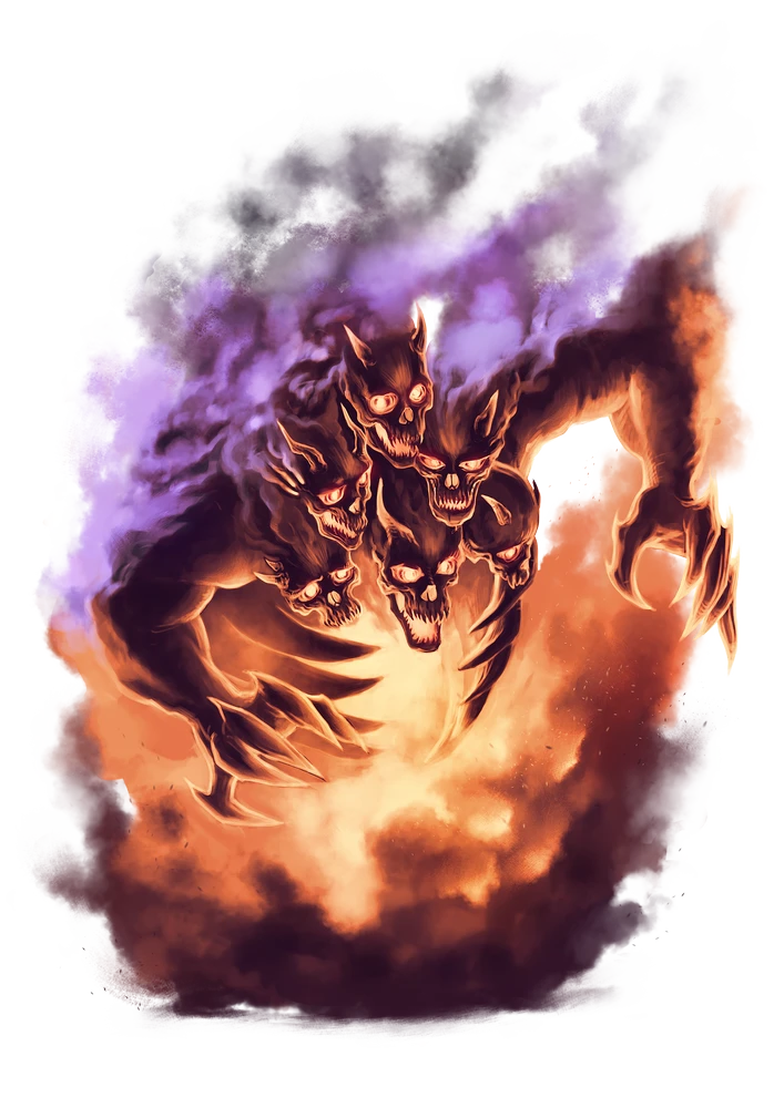 Hellshadows look like a bank of fire and smoke, yet the flames themselves are made of distorted bodies and faces. Although made of multiple souls, a hellshadow is a singular creature with one mind and typically one goal: to defeat as many enemies of their faith as they can in order to repay the shame of their humiliating deaths.