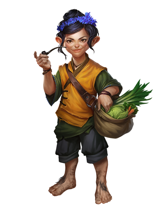 Halfling Humanoid Source Player Core pg. 59 2.0Halflings are a short, resilient people who exhibit remarkable curiosity and humor.Claiming no place as their own, halflings control few settlements larger than villages. Instead, they frequently live among humans within larger cities, carving out small communities alongside taller folk. Optimistic, cheerful, and driven by powerful wanderlust, halflings make up for their short stature with an abundance of bravado. At once excitable and easygoing, halflings are the best kind of opportunists, and their passions favor joy over violence. While their curiosity sometimes drives them toward adventure, halflings also carry strong ties to house and home.
