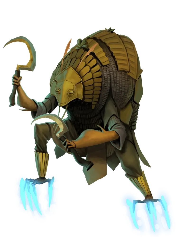 Surkis are only now emerging from the subterranean Darklands in a generational dig to the surface. This insectile and highly metamorphic species subsists on the latent magic in the world around them. Once they have refined enough, surkis are capable of developing unique adaptations that allow them to project magic in diverse ways, from digging claws to energized wings.