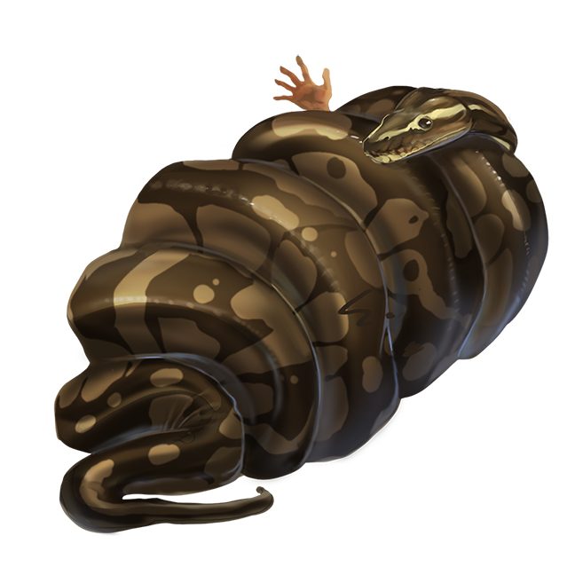 Snakes of all sorts eat their meals by devouring their prey whole. After incapacitating a creature, a snake unhinges its jaw and consumes the creature entirely, even if it's more than twice the diameter of the snake's body. A snake can consume a creature of the same size as itself or smaller, but most snakes are logy and sluggish while the meal digests.