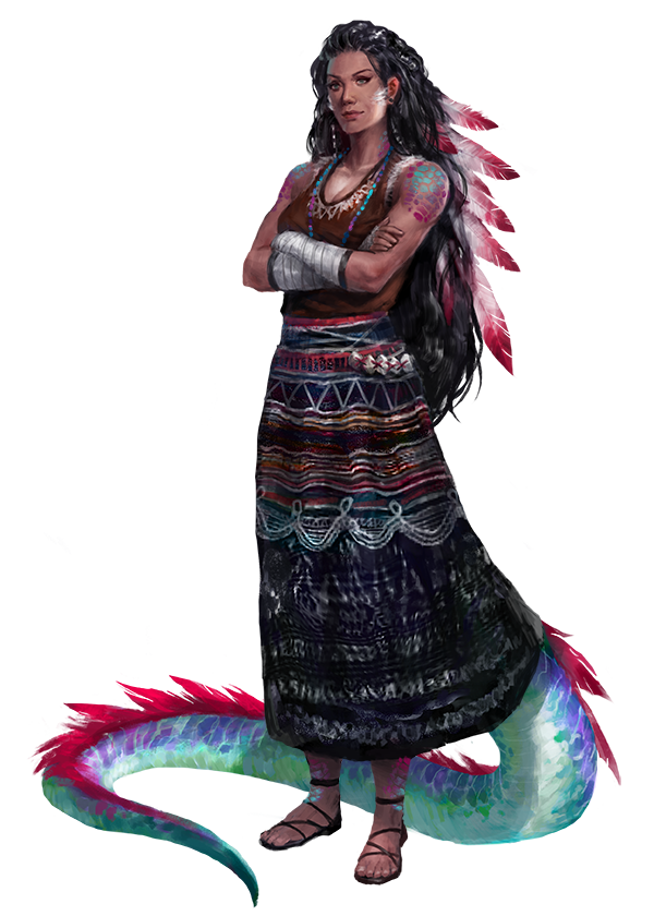 Unsurprisingly, ganzis lean heavily towards chaos, favoring organizations like the Firebrands. This is hardly universal, however—even a few suits of Hellknight armor accommodate a feathered serpent tail. Likewise, many ganzis find themselves suited to the service of Desna, Cayden Cailean, and other powers that value freedom and individuality.