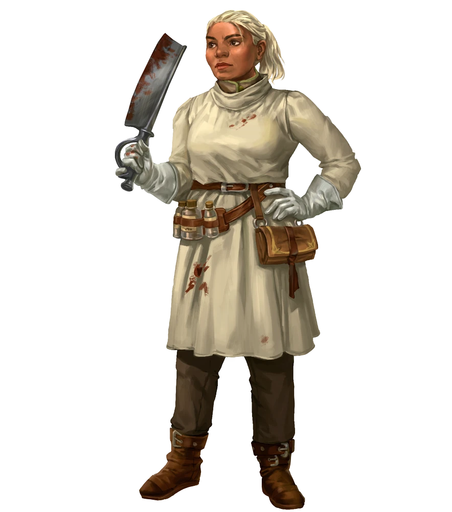 Melee [one-action] bonesaw +9 [+4/-1] (trip), Damage 1d8+1 slashingMelee [one-action] scalpel +11 [+7/+3] (agile, finesse, versatile S), Damage 1d4+1 piercingMelee [one-action] fist +11 [+7/+3] (agile, finesse, nonlethal, unarmed), Damage 1d4+1 bludgeoningRanged [one-action] scalpel +11 [+7/+3] (agile, finesse, thrown 10 feet, versatile S), Damage 1d4+1 piercingMedical Malpractice [one-action] The surgeon attempts a Medicine check against the Fortitude DC of one living creature they can see within 60 feet. On a success, the surgeon's melee Strikes deal an extra 1d6 precision damage against that creature (2d6 on a critical success) until 1 minute passes or the surgeon critically hits that creature, whichever comes first. Using this action again ends any previous one. A surgeon can target an individual creature no more than once per day with this ability.
