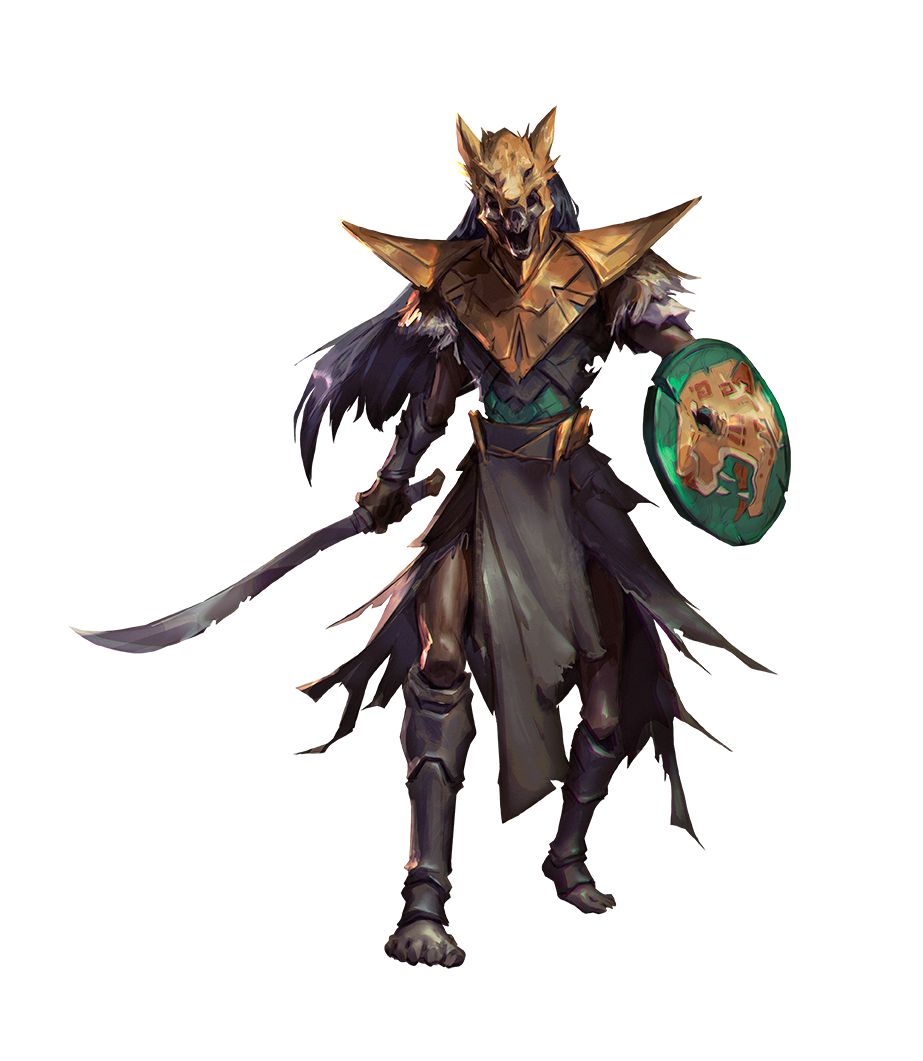 While most herexens were clerics or clergy in life, fallen champions were holy crusaders that upheld the ideals of their deity while fighting enemies of the church and defending its congregants. Fallen champions are direct in their actions and wage their divine war on a grand scale. This fallen champion once worshiped the Arcadian goddess Kazutal, also called Mother Jaguar.