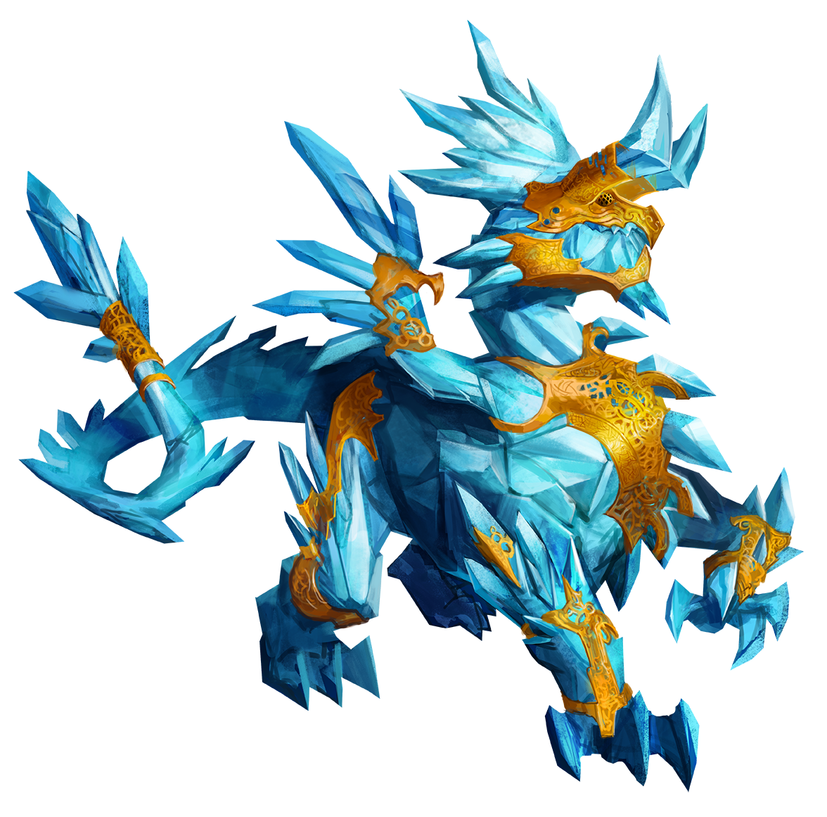 Created by Mengkare and powered by a shard of the Orb of Gold Dragonkind, this construct is made of sculpted crystal draped in a beautiful gold filigree frame.