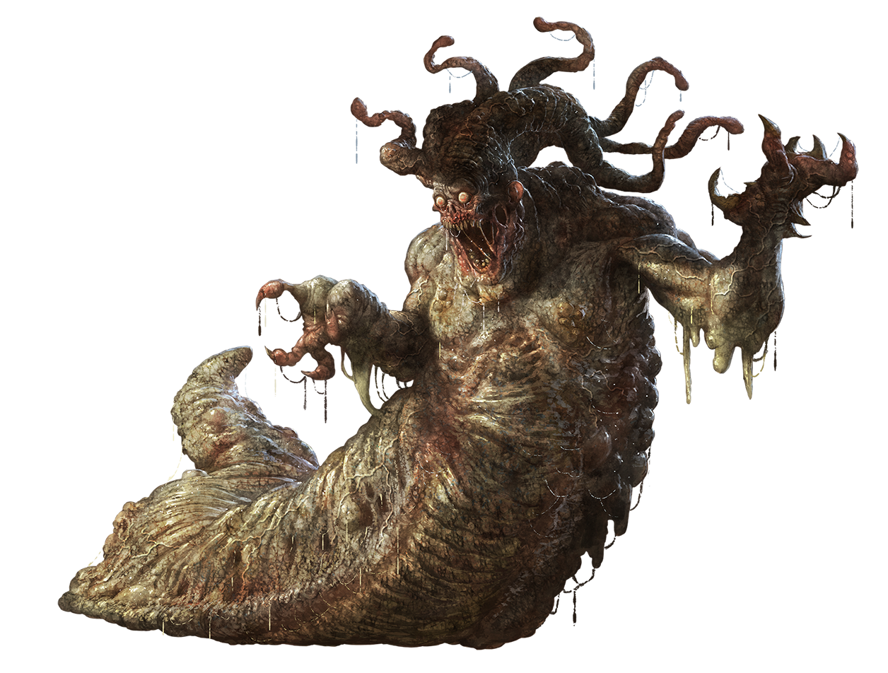 Grothluts may be the weakest example of a fleshwarp, and driders the most successful, but others exist as well. Ghonhatines are lumbering fleshwarps formed from xulgaths, while the tentacled irnakurses are formed from surface-dwelling elves. Sinspawn are fleshwarps as well, of course, although their methods of creation differ drastically from the techniques mastered by drow.
